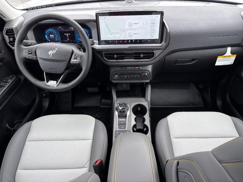 The leather seats in the vehicle are a must for buyers looking for comfort, durability, and style. You'll never again be lost in a crowded city or a country region with the navigation system on this 2025 Ford Bronco Sport . This Ford Bronco Sport offers Apple CarPlay for seamless connectivity. Bluetooth® technology is built into this model, keeping your hands on the steering wheel and your focus on the road. It has automated speed control that adjusts to maintain a safe following distance, enhancing highway driving convenience. This mid-size suv is pure luxury with a heated steering wheel. This vehicle comes equipped with Android Auto for seamless smartphone integration on the road. See what's behind you with the back up camera on the vehicle. Start this vehicle from inside with remote start. An off-road package is equipped on the vehicle. This mid-size suv has a 4 Cyl, 2.0L high output engine.