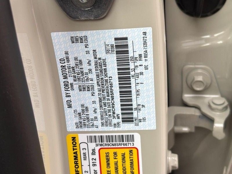 Outer Banks Tech Package+: B&O Sound System by Bang & Olufsen; Connected Navigation; HD Radio. Equipment Group 300A: 18" Ebony Black Wheels; Premium Trimmed Front Bucket Seats W/ebony/roast; 8-Speed Automatic Transmission; 225/60R18 All Season Tires Bsw; AM/FM Stereo; 1.5L EcoBoost Engine. Ford Co-Pilot360 Assist 2.0: Reverse Brake Assist; Front Parking Sensors; 360-Degree Camera with Trail and Split View. Power Moonroof. Desert Sand. 2nd Row Carpeted Seatback. **Equipment listed is based on original vehicle build and subject to change. Please confirm the accuracy of the included equipment by calling the dealer prior to purchase.**
