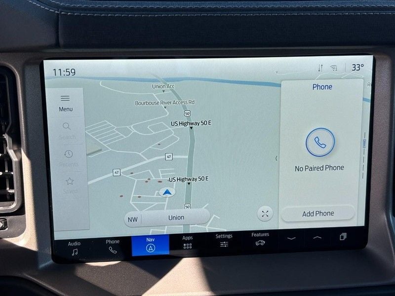 Keep your hands warm all winter with a heated steering wheel in the Ford Bronco . This 1/2 ton suv offers Android Auto for seamless smartphone integration. Protect this Ford Bronco from unwanted accidents with a cutting edge backup camera system. Bluetooth® technology is built into the vehicle, keeping your hands on the steering wheel and your focus on the road. Apple CarPlay: Seamless smartphone integration for the Ford Bronco - stay connected and entertained on the go! The installed navigation system will keep you on the right path. An off-road package is equipped on the Ford Bronco. This unit's Cross-Traffic Alert: Safeguarding you from unexpected traffic when reversing. The leather seats in this model are a must for buyers looking for comfort, durability, and style. Start this Ford Bronco from inside with remote start. When you encounter slick or muddy roads, you can engage the four wheel drive on it and drive with confidence.