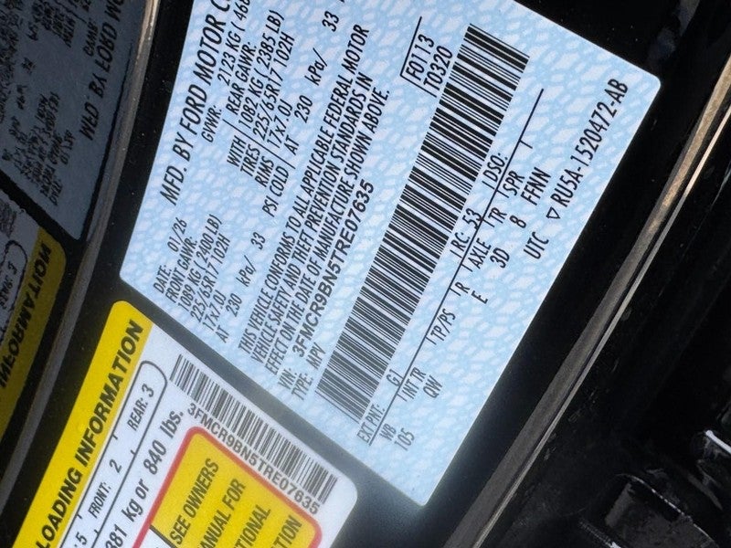 Black Diamond Off-Road Package: Front Brush Guard; Auxiliary Switches and Wiring; Class II Trailer Tow Package with Trailer Sway Control; Underbody Protection; Front Black Molded-In-Color (MIC) Bumper; 400W Pro Power Onboard. Equipment Group 200A Standard Package: 17" Carbonized Gray Painted Aluminum Wheels; Cloth with Easy-To-clean Front Bucket Seats; 8-Speed Automatic Transmission; 225/65R17 102H All-Season BSW Tires; AM/FM Stereo; 1.5L EcoBoost Engine. Cargo Management System (shelf/divider/table). **Equipment listed is based on original vehicle build and subject to change. Please confirm the accuracy of the included equipment by calling the dealer prior to purchase.**