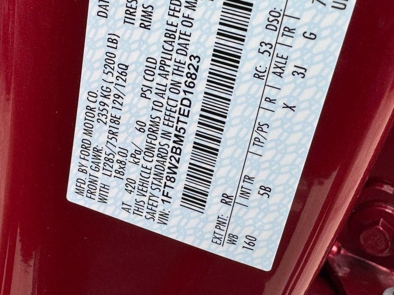 Lariat Premium Package. Tremor Off-Road Package. Lariat Ultimate Package: 4-Way Adjustable Headrests; Tailgate Step and Handle; Head-Up Display; Power-Deployable Running Boards. Order Code 608A: 18" Bright Machined and Carbonized Gray Aluminum Wheels; Front ActiveX Trimmed 40/console/40 Seats; LT275/65Rx18E BSW A/S Tires; B&O Sound System by Bang and Olufsen. Twin Panel Power Moonroof. High Capacity 11.6" Axle Upgrade Package. Power-Deployable Running Boards. Tough Bed Spray-In Bedliner. Ruby Red Met Tinted CC. Electronic-Locking with 3.55 Axle Ratio. Tailgate Step and Handle. Rapid-Heat Supplemental Cab Heater. Front and Rear Wheel Well Liners. Upfitter Switches (6). All-Weather Floor Mats. LED Roof Clearance Lights. **Equipment listed is based on original vehicle build and subject to change. Please confirm the accuracy of the included equipment by calling the dealer prior to purchase.**