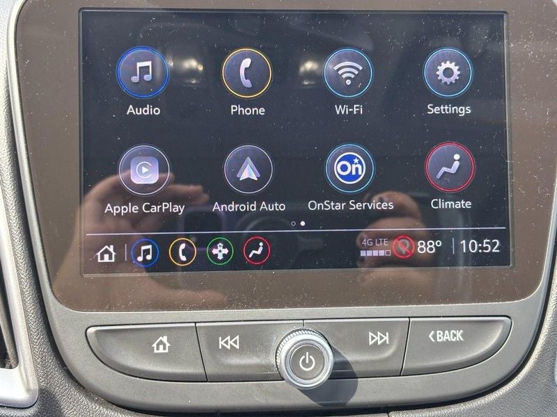 - Audio system, Chevrolet Infotainment 3 system, 8" diagonal color touchscreen, AM/FM stereo. Additional features for compatible phones include: Bluetooth audio streaming for 2 active devices, voice command pass-through to phone, Apple CarPlay and Android Auto capable.