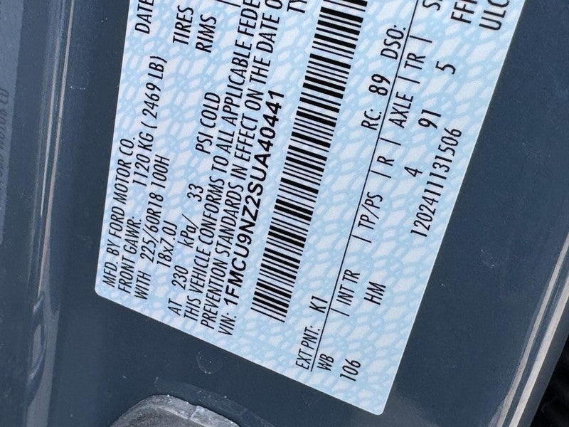 Tech Pack #2: 6-Way Power Passenger Seat; 360-Degree Camera with Split View; Wireless Charging Pad; SYNC 4 with Enhanced Voice Recognition; 12.3" Productivity Screen in Instrument Cluster; Memory Package; Ford Co-Pilot360 Assist 2.0; 10-Way Power Driver Seat; Body Color Mirrors; HD Radio. Equipment Group 400A: 18" Rock Metallic Painted Aluminum Wheels; 2.91 Axle Ratio; ECVT Transmission; Electronic Fuel Door Release; Heated Vinyl/cloth Front Sport Contour Bucket Seats; 225/60R18 AS BSW Tires; Mini Spare Wheel; 2.5L IVCT Atkinson Cycle I-4 Hybrid Engine; TBD GVWR; AM/FM Stereo; Neutral Towing Capability; Pedestrian Alert Sounder. Mini Spare Wheel. Front and Rear Floor Liners with Carpet Mats. Easy Access Cargo Shade. **Equipment listed is based on original vehicle build and subject to change. Please confirm the accuracy of the included equipment by calling the dealer prior to purchase.**